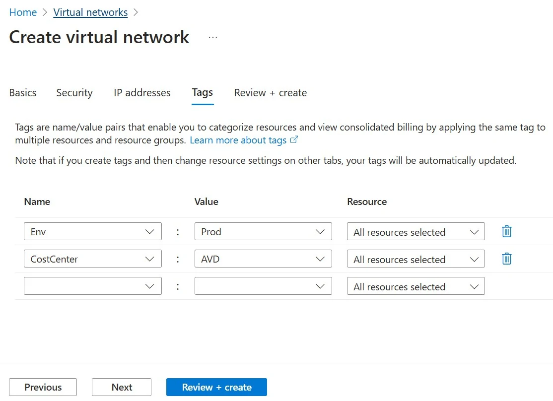 12. Provide the tags, if any.13. Click Next: Review +Create.